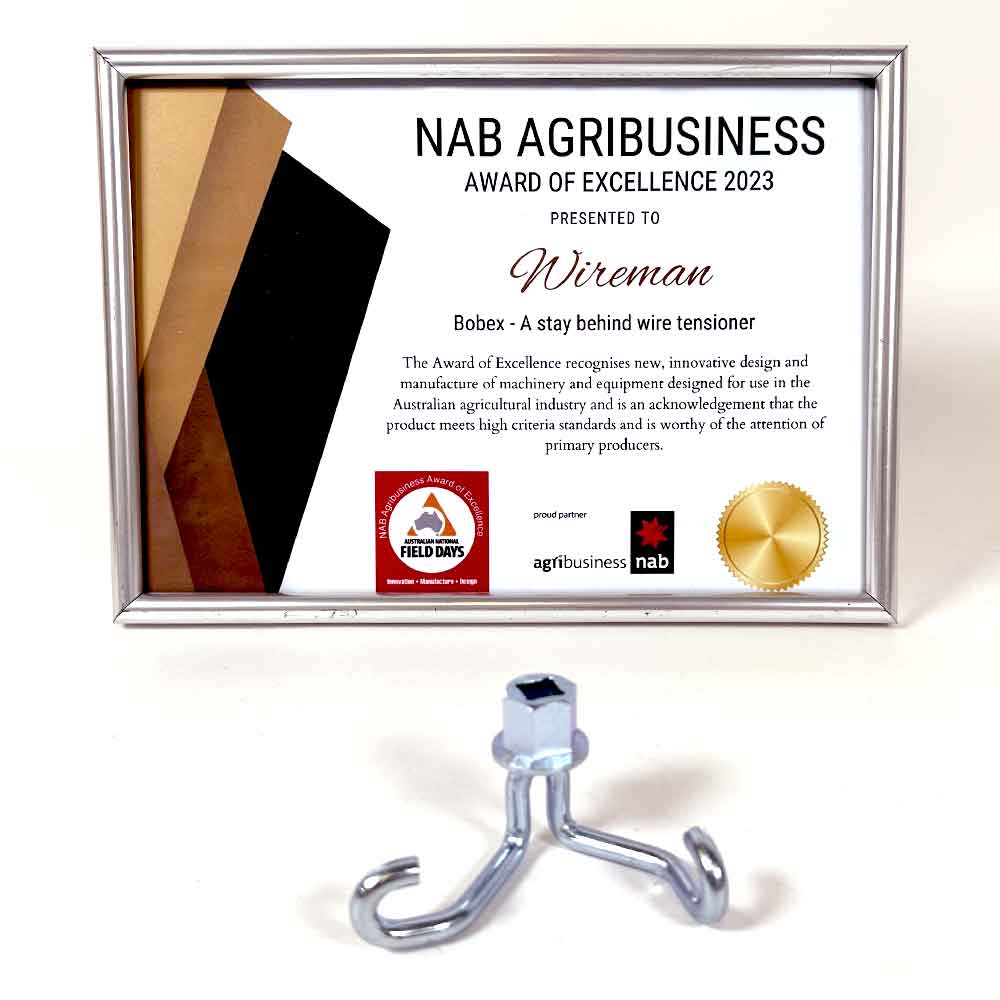 At the 2023 Australian National Field Days Wireman was presented with a NAB Agribusiness Award of Excellence - Which recognises new, innovative machinery and equipment designed for use in the Australian agricultural industry and is an acknowledgement that the product meets high criteria standards and is worthy of the attention of primary producers.