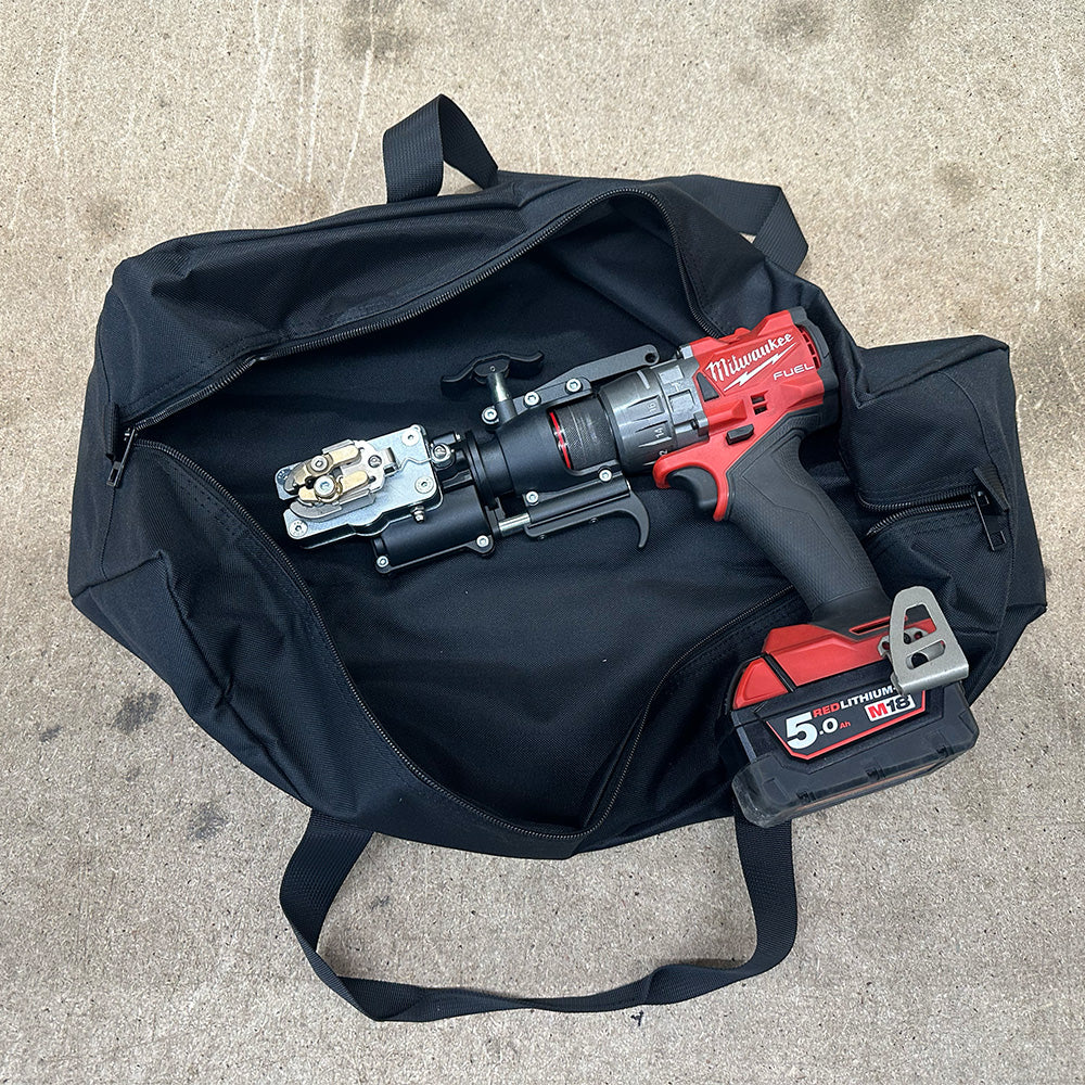 Supplied with additional grip fingers, brass roller, screws, roll pins, bag and adapter for MILWAUKEE M18 FPD3 drill.