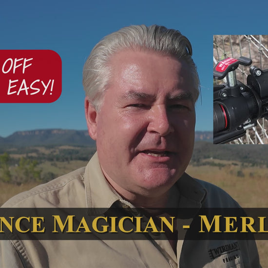 The Merlin is very easy to use and makes light work of tying off High tensile wire up to 3.15mm (8 Gauge). The tool has been specifically designed to be able to get into tight spots and tie off equine or horse mesh (also known as no climb), as well as exclusion netting and wallaby wire. It can also attach heavy duty woven barbed wire to posts.