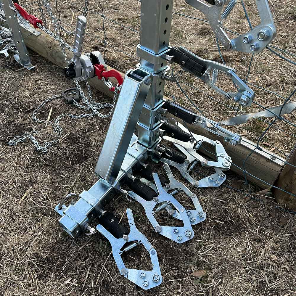 The West Ender Stout Rigger foot allows you to strain both the apron and netting wire on a an exclusion fence at the same time. The Stout Rigger foot is easily attached to any West Ender Strainer Board and can quickly be adjusted to suit sloping ground.
