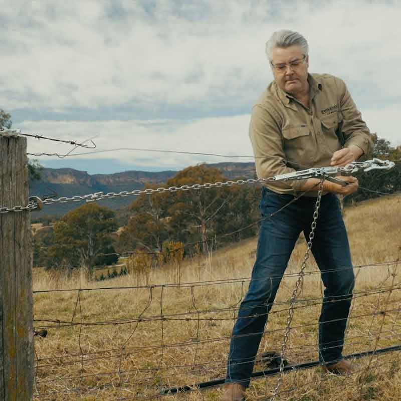 The easiest and quickest way to strain hinge lock and net fencing wire.